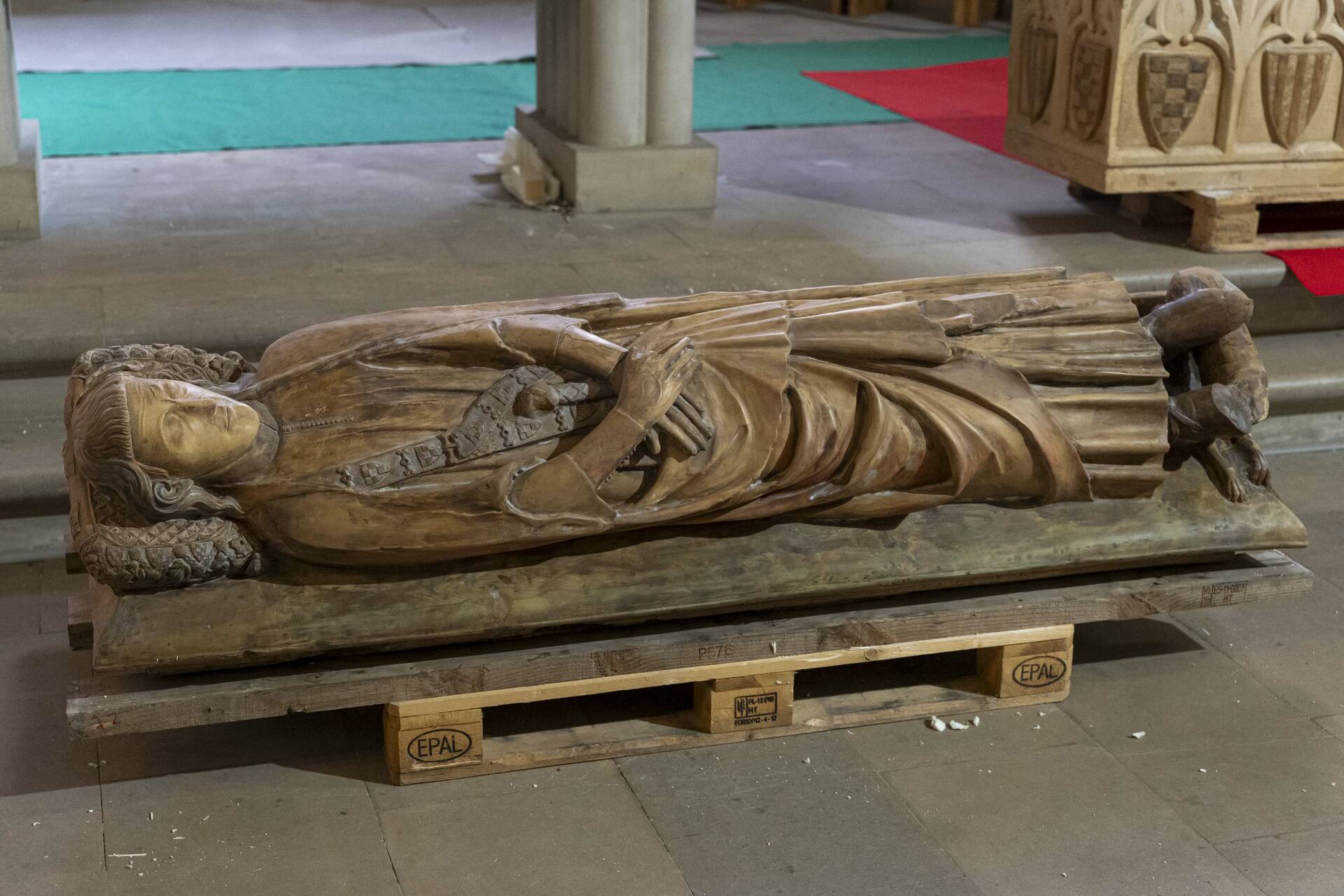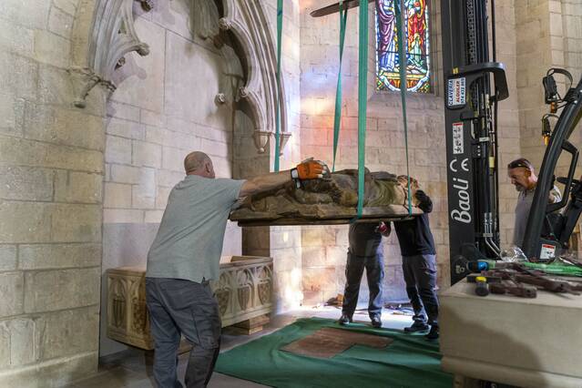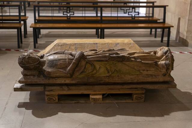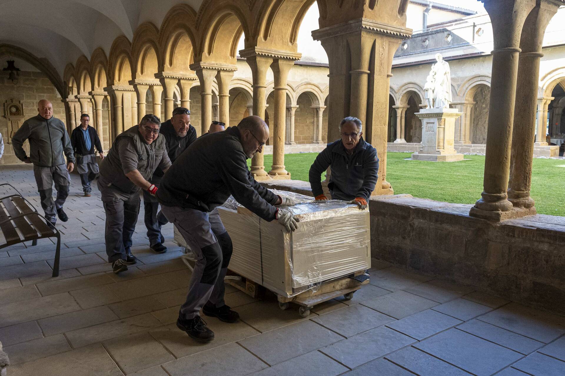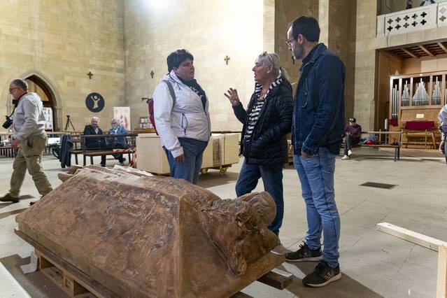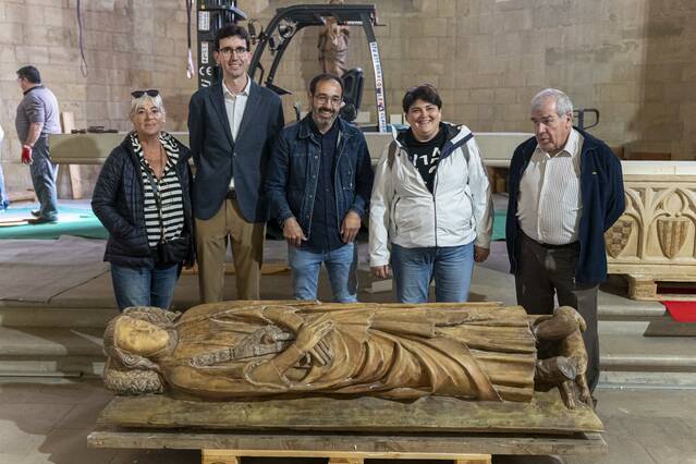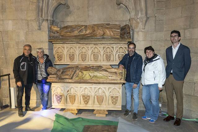 El monestir de les Avellanes ja llueix la reproducció del segon sepulcre dels comtes d’Urgell, la tomba doble d’Àlvar I i Cecília de Foix
