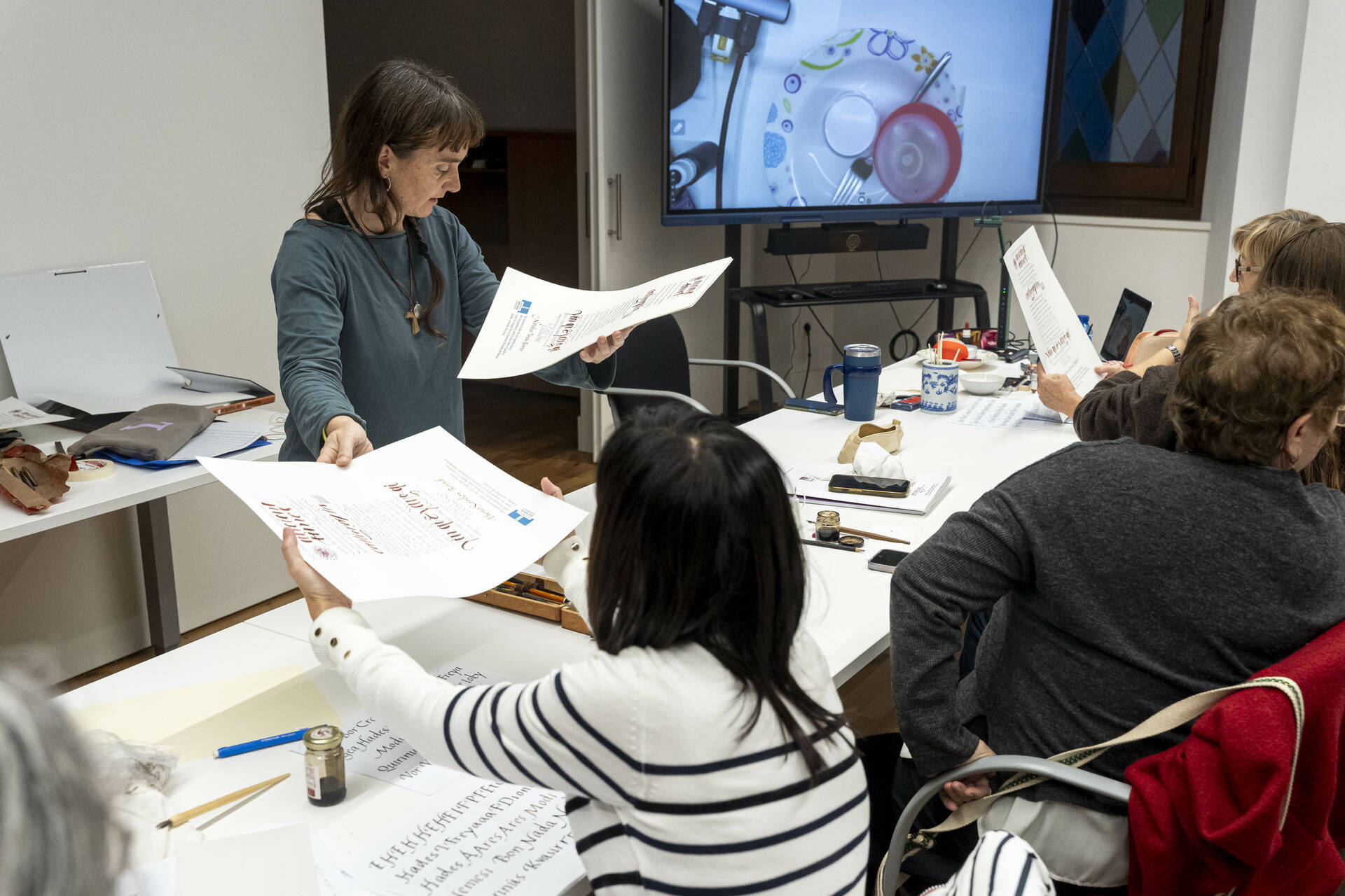 “Algunes no n’han fet mai, comencen de zero; altres porten anys fent cal·ligrafia, i resulta molt emocionant anar veient com van descobrint, pas a pas, aquest món tan desconegut i alhora inesgotable”, ha afegit Soler. La docent ha destacat també que aquests seminaris “aporten coneixement al saber cultural de la nostra comunitat”, i que els participants, a partir d’ara, “quan vegin un manuscrit antic intentaran situar-lo en el temps i identificar-ne l’escriptura; o aniran pel carrer fixant-se en els traços prims i gruixuts de les lletres majúscules dels cartells; o agafaran tinta i una ploma a casa i escriuran amb cura, en plena era digital”.