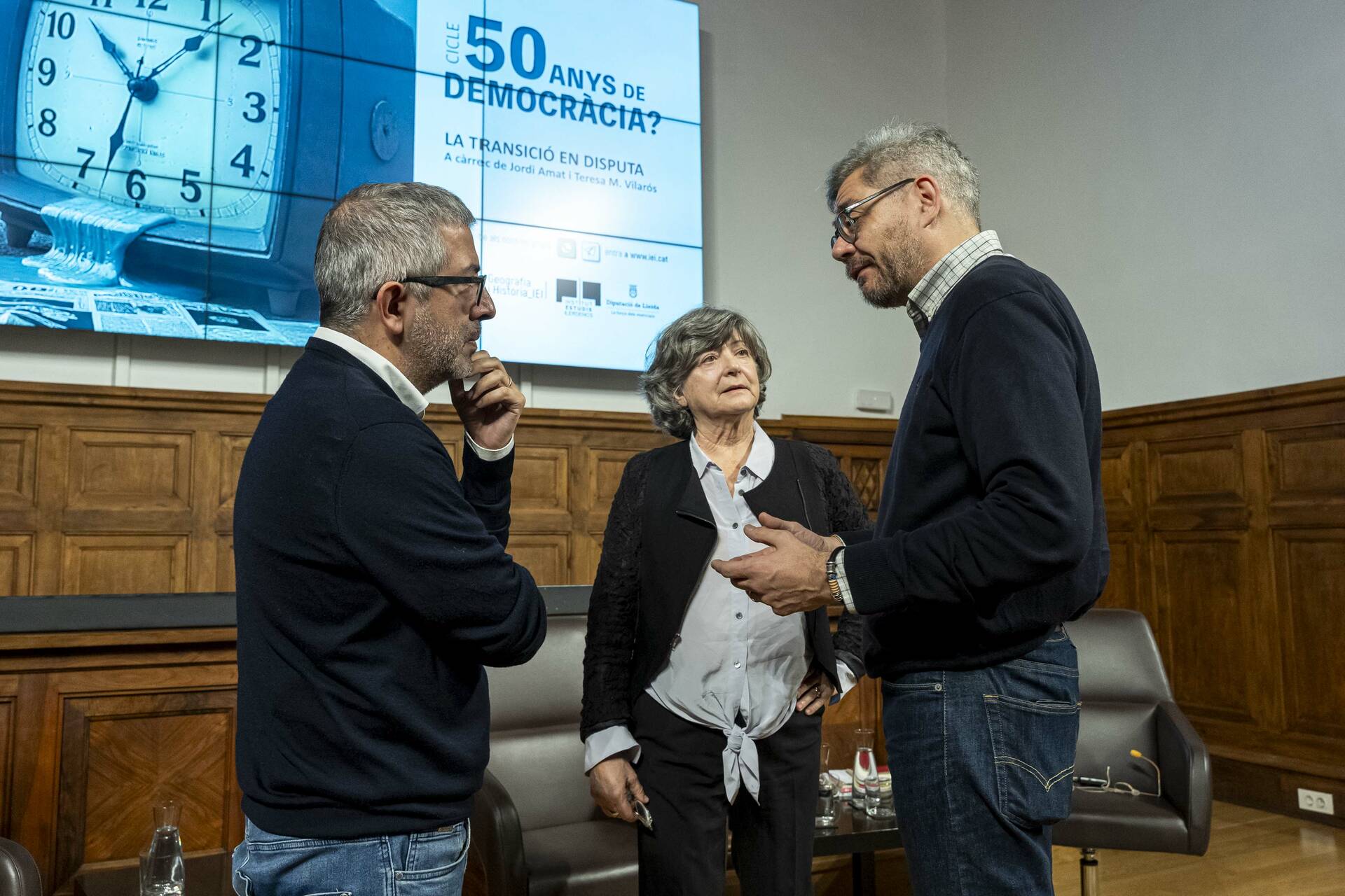 El cicle ‘50 anys de Democràcia?’ ha celebrat aquest dimecres la seva segona sessió amb la conferència 'La Transició en disputa', a càrrec del filòleg i escriptor Jordi Amat i de la catedràtica en estudis visuals i culturals i doctora en literatura Teresa M. Vilarós.