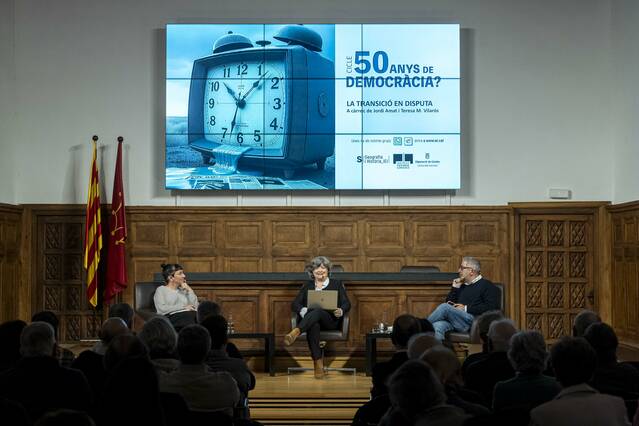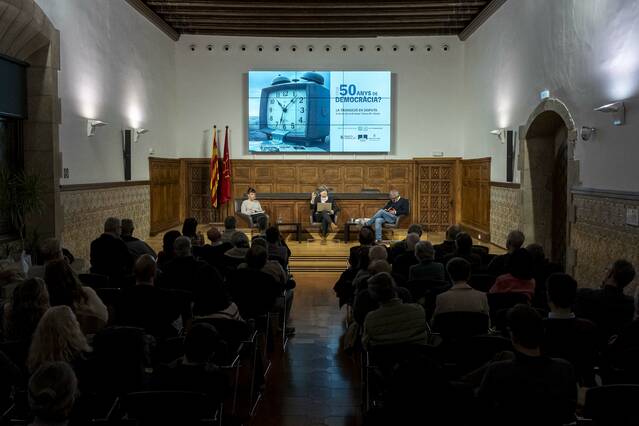 El cicle ‘50 anys de Democràcia?’ es va iniciar el passat 20 de novembre amb l’objectiu de fer un balanç històric, polític, social i cultural del canvi de cicle i de la recuperació dels drets i les llibertats democràtiques, coincidint amb els cinquanta anys de la mort del dictador Francisco Franco. La proposta convida a reflexionar sobre els rastres de la dictadura en el present, tant en termes de superació com de pervivència, especialment en el context actual d’auge de l’extrema dreta a Europa.