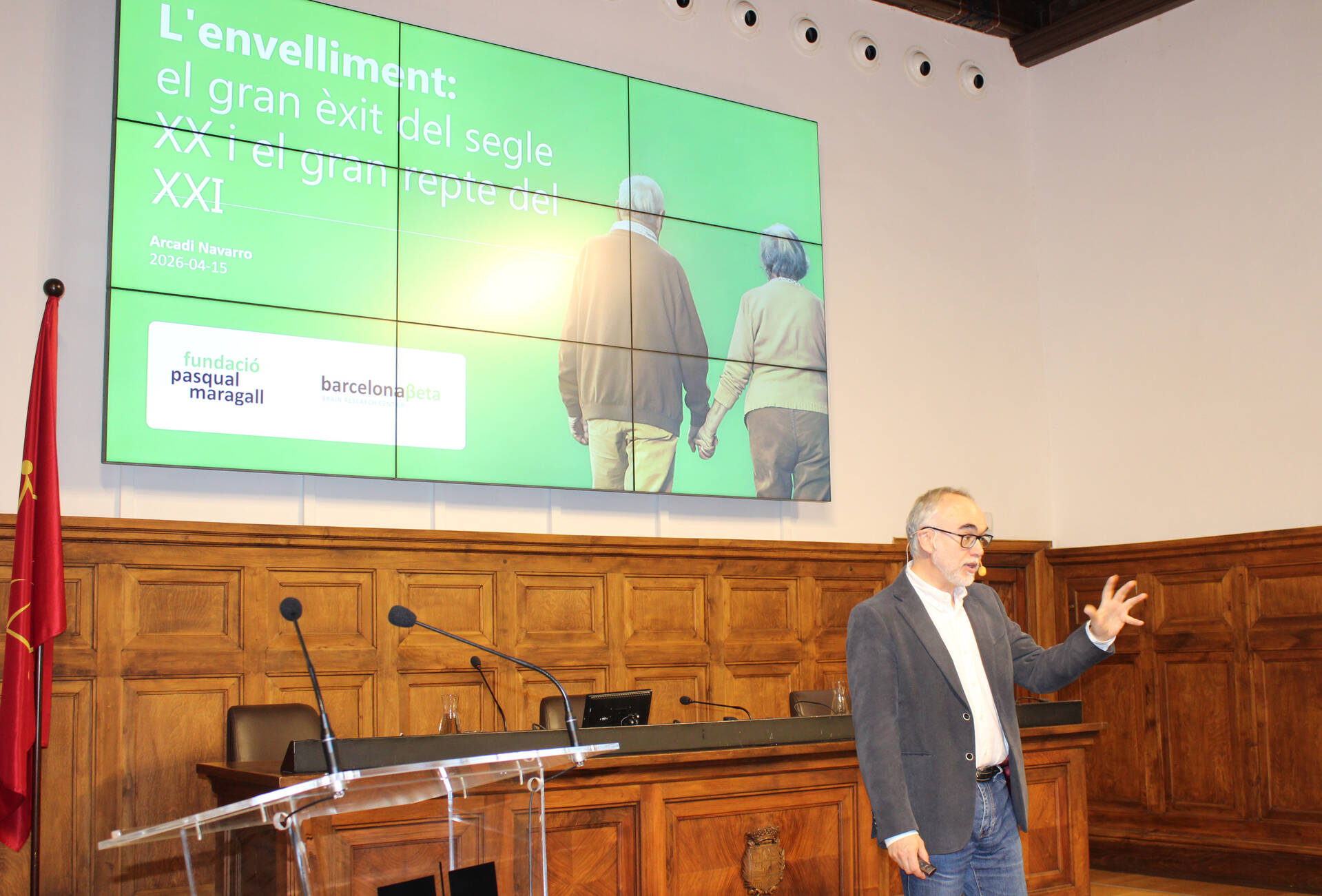 Al primer, el director de la Fundació Pasqual Maragall i del Barcelonaβeta Brain Research Center, Arcadi Navarro, ha ofert la conferència 'L’envelliment: el gran èxit del segle XX i el gran repte del XXI’. Navarro ha convidat a reflexionar sobre l’envelliment com una de les grans conquestes de la nostra societat, però també com un desafiament científic, mèdic i social de primera magnitud. En aquest context, Navarro ha abordat la necessitat d’avançar cap a un futur en què envellir s’associï a experiències positives, tot reforçant la recerca, la detecció precoç de l’Alzheimer i el suport a les persones afectades i les seves famílies.