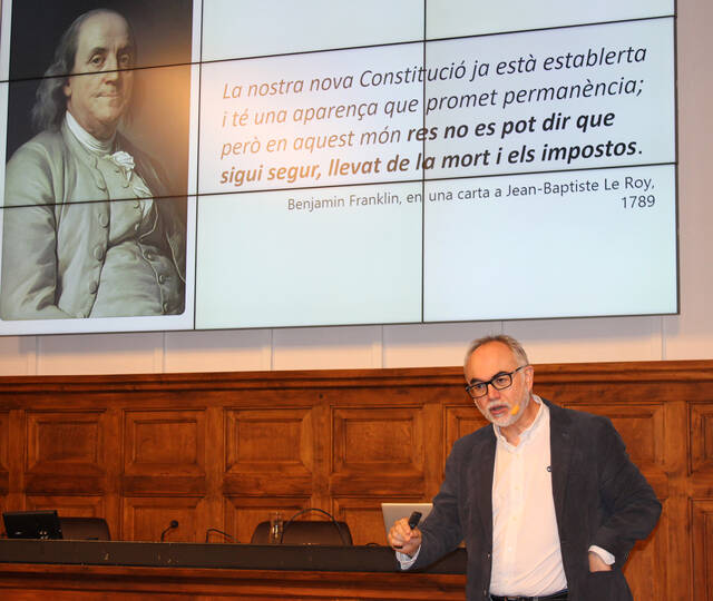 El director de l’IEI, Andreu Vàzquez, ha assistit a aquesta jornada que s’ha desenvolupat en dos blocs i que ha presentat el coordinador de la Secció de Biomedicina de l’IEI, Joan Fibla.