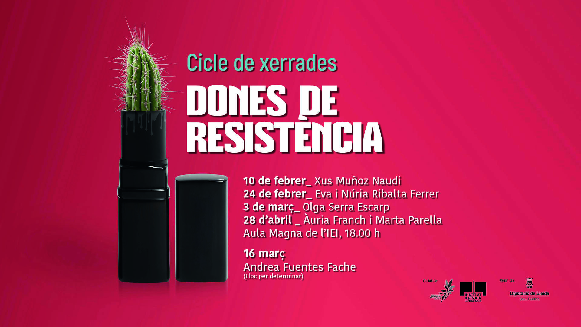 El cicle seguirà el 24 de febrer amb les germanes Eva i Núria Ribalta, que parlaran de ‘Dues lleidatanes als campionats del món en disciplines ultra. Ironman i Gravel’; continuarà el 3 de març amb Olga Serra Escarp i la xerrada ‘Espai dones sense Etiquetes. De l’autoconeixement a potenciar el talent’; el 16 de març amb Andrea Fuentes, actual seleccionadora de l’equip espanyol de natació artística, que parlarà sobre ‘Inspiració, esforç, passió i màgia’, i acabarà el 28 d’abril amb Àuria Franch i Marta Parella, que oferiran la sessió titulada ‘Posa música a la teva autoestima’. Totes les sessions tindran lloc a les sis de la tarda a l’Aula Magna de l’IEI, excepte la del 16 de març (lloc per determinar).