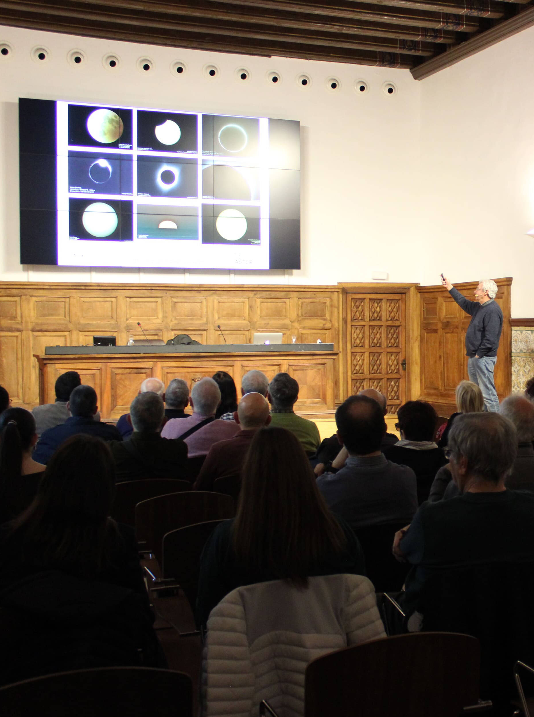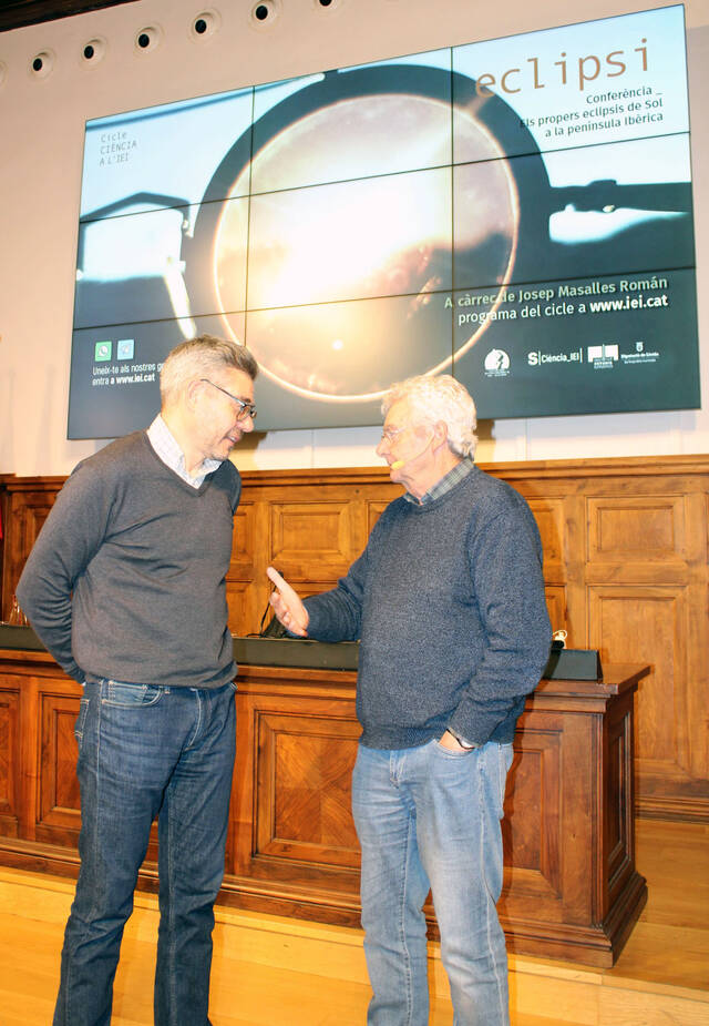 Pel que fa a la conferència ‘Els propers eclipsis de Sol a la península Ibèrica’, Josep Masalles ha explicat a l’Aula Magna de l’IEI en què consisteix aquest fenomen astronòmic i com planificar-ne l’observació. També ha detallat com observar-lo amb seguretat, com obtenir bones fotografies i com gaudir-ne al màxim.