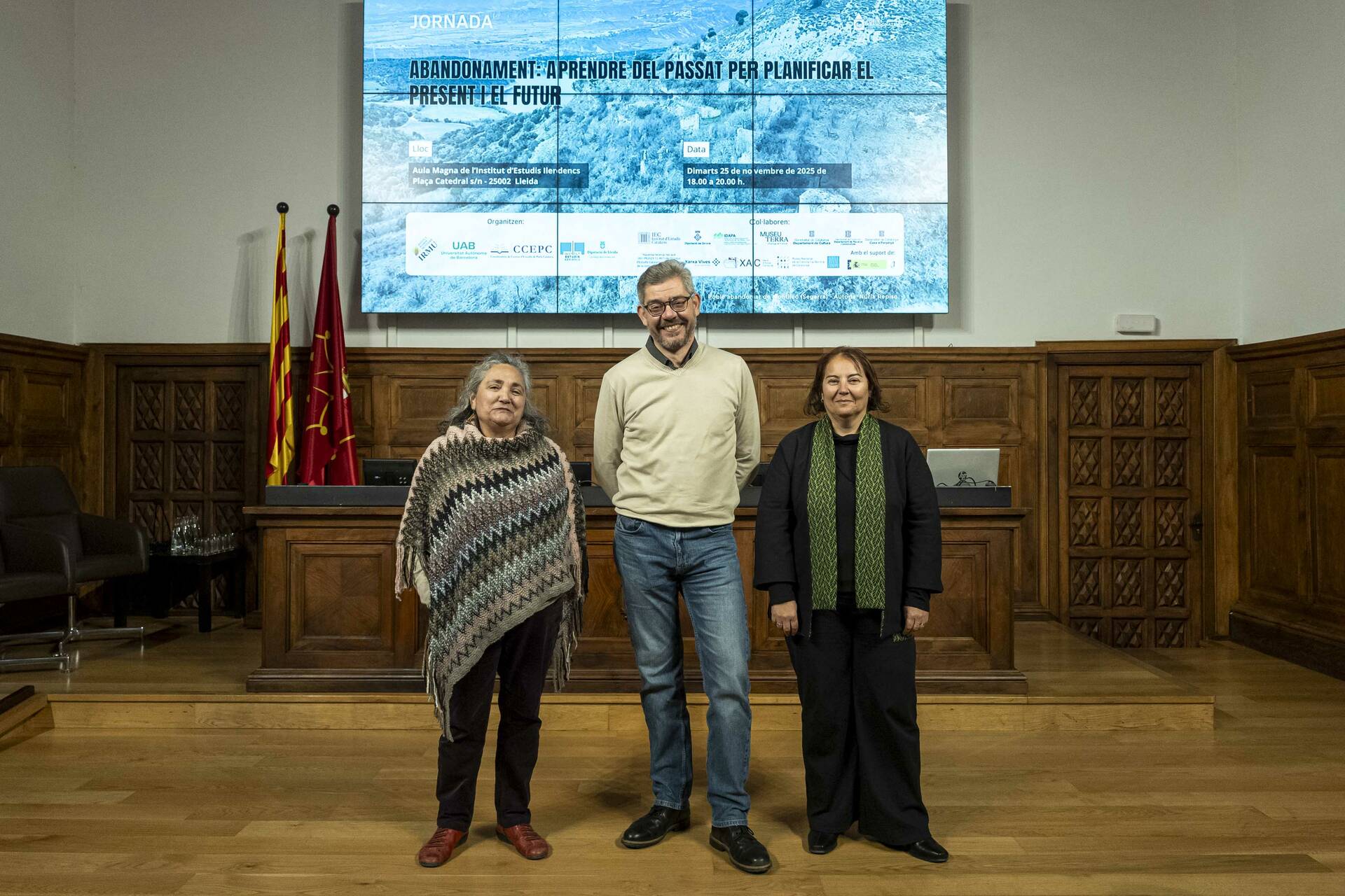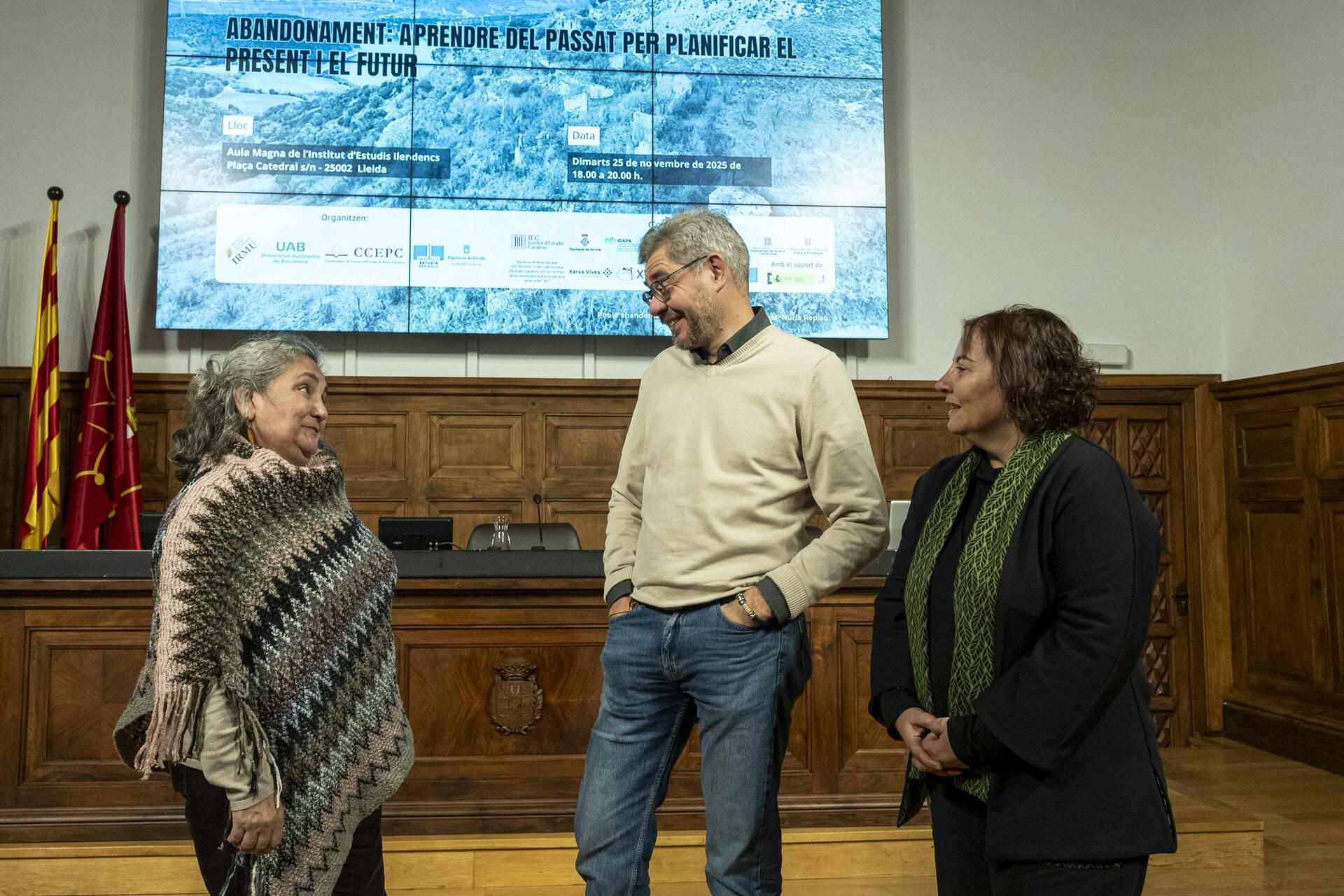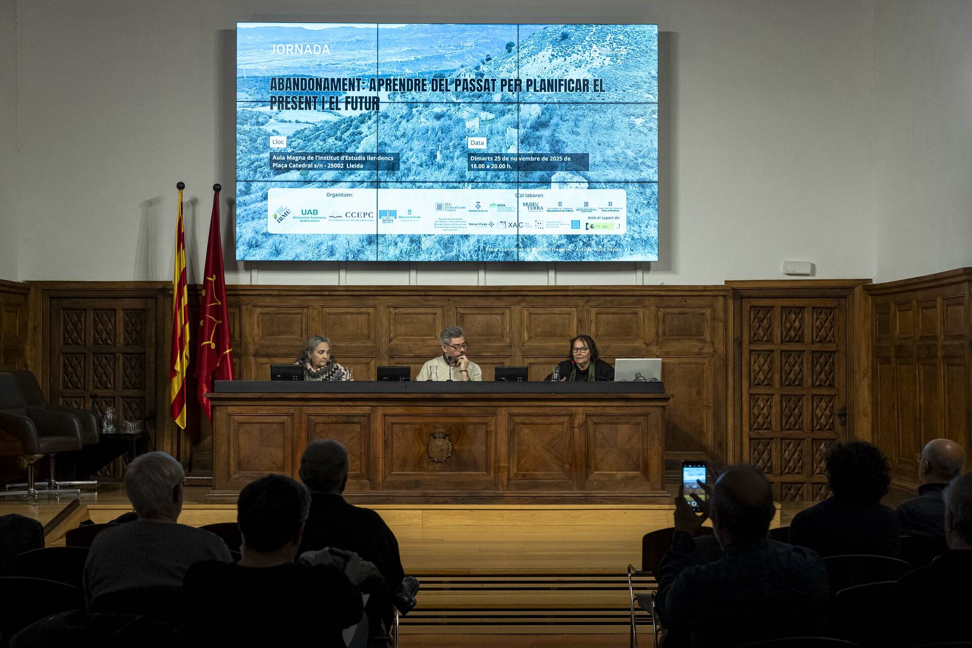 El projecte Pobles Abandonats ha fet balanç aquesta tarda de la seva trajectòria amb una jornada que s’ha celebrat a l’Aula Magna de l’Institut d’Estudis Ilerdencs. La sessió ha estat inaugurada pel director de l’IEI, Andreu Vàzquez; la vicepresidenta de la Coordinadora de Centres d’Estudis de Parla Catalana-CCEPC i membre del Patronat de l’Institut Ramon Muntaner-IRMU, Maria Jesús Llavero; la directora de l’IDAPA-Institut per al Desenvolupament i la Promoció de l’Alt Pirineu i Aran, Amàlia Sanz; i la directora de l'Institut Ramon Muntaner, M. Carme Jiménez.