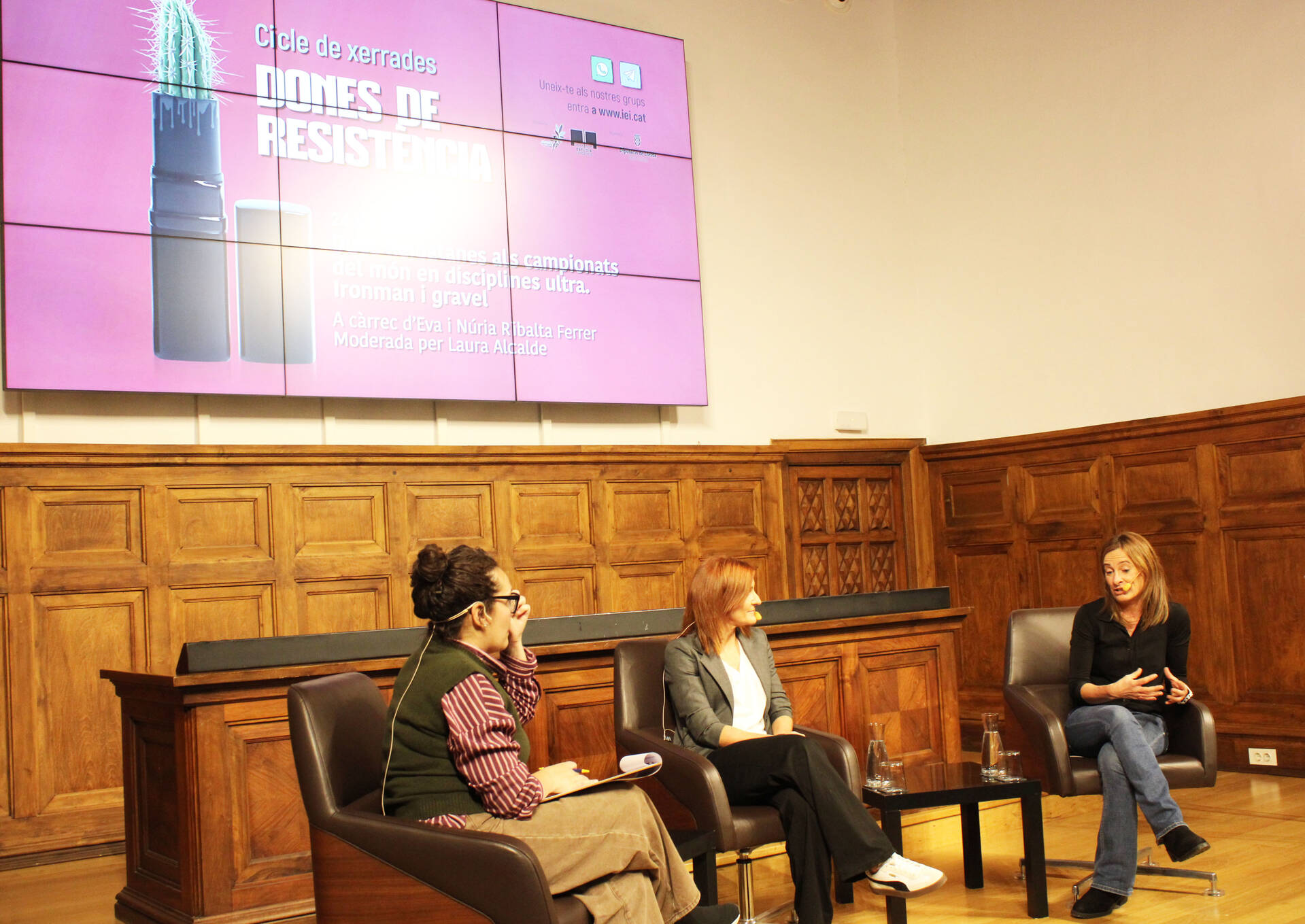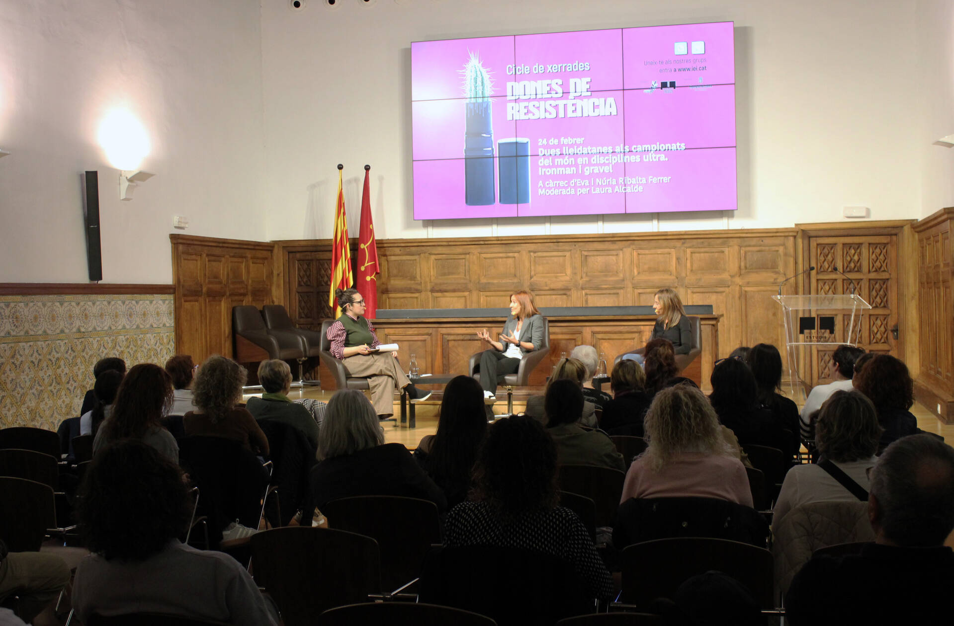 Les dues germanes han compartit aquesta experiència “en tàndem” davant l’auditori reunit a l’Aula Magna de l’IEI. Fa tot just una setmana, l’espai va acollir la primera sessió del cicle amb la corredora lleidatana d’ultrafons Xus Muñoz Naudi, que va oferir la xerrada ‘Quan una dona corre fins on li van dir que no podia’.