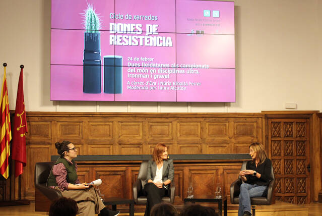 Les germanes Eva i Núria Ribalta Ferrer han participat aquest dimarts en la segona sessió del cicle ‘Dones de resistència’, una iniciativa de l’Àrea de Salut i Esports de la Diputació de Lleida amb la col·laboració de l’Institut d’Estudis Ilerdencs i l’Associació d’Esport Femení Lleida. La xerrada, moderada per la periodista Laura Alcalde, ha comptat amb la presència de la vicepresidenta de l’IEI, Estefania Rufach.