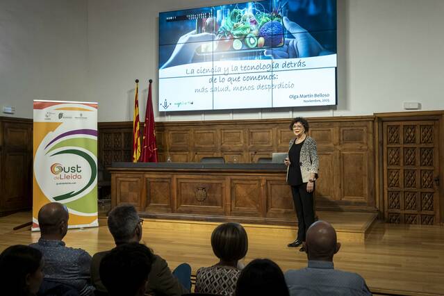 La conferència ha analitzat l’evolució de les tècniques de conservació dels aliments. Així, la doctora Martín Belloso ha recordat com, des de sempre, conservar els aliments ha estat clau per evitar-ne el malbaratament i garantir-ne la disponibilitat, i com, tot i que la calor va ser la primera tecnologia usada, avui dia hi ha mètodes no tèrmics que preserven millor la qualitat nutricional i sensorial dels productes, amb el valor afegit que aquestes tècniques també permeten crear aliments més saludables, adaptats a necessitats específiques, i aprofitar subproductes. D’aquesta manera, la tecnologia alimentària actual contribueix a oferir productes més segurs, nutritius, sostenibles i personalitzats per a cada tipus de consumidor, ha explicat.