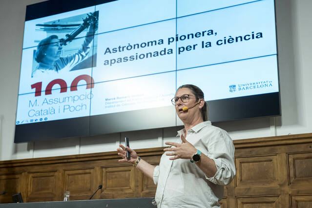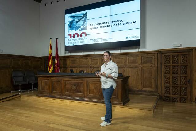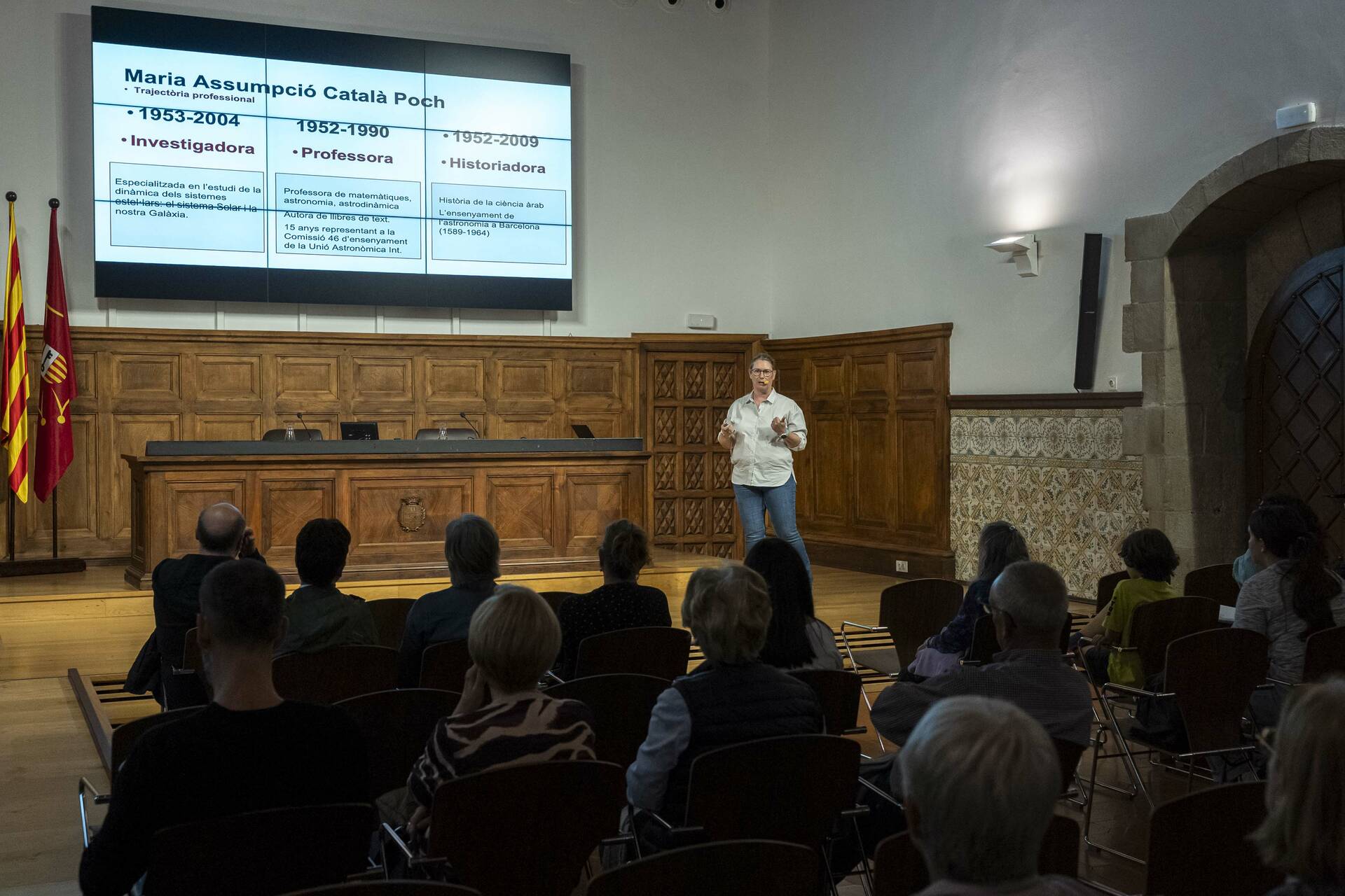 Durant la seva intervenció, la doctora Mercè Romero ha repassat la trajectòria d’aquesta científica pionera, que el 1971 es va convertir en la primera dona a doctorar-se en matemàtiques a la Universitat de Barcelona, i el 1975, en la primera professora numerària astrònoma de l’Estat espanyol.