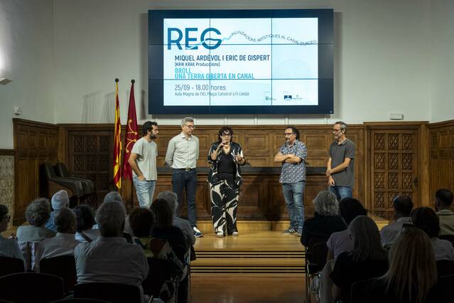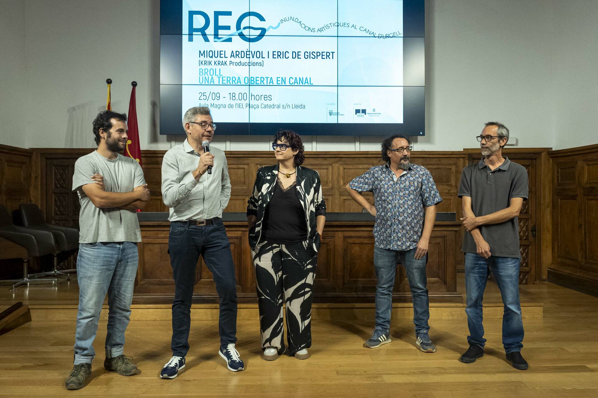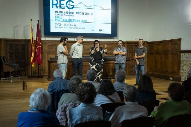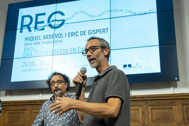L’Aula Magna de l’Institut d’Estudis Ilerdencs ha acollit aquest dijous la projecció de ‘Broll. Una terra oberta en Canal’, una peça audiovisual de Miquel Ardèvol i Eric de Gispert, de Krik Krak Produccions, que relliga les cinc accions artístiques del projecte ‘REG. Inundacions artístiques al Canal d’Urgell’, impulsat per l’IEI i comissariat per Pau Minguet.